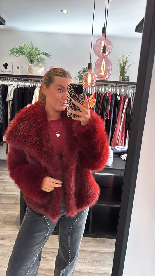 Faux Fur Jasje Bordeaux