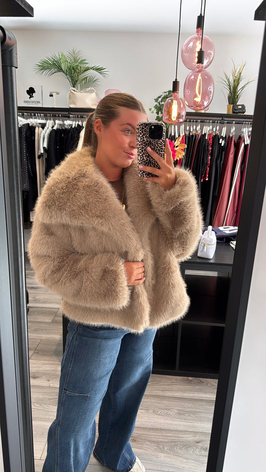 Faux Fur Jasje Taupe