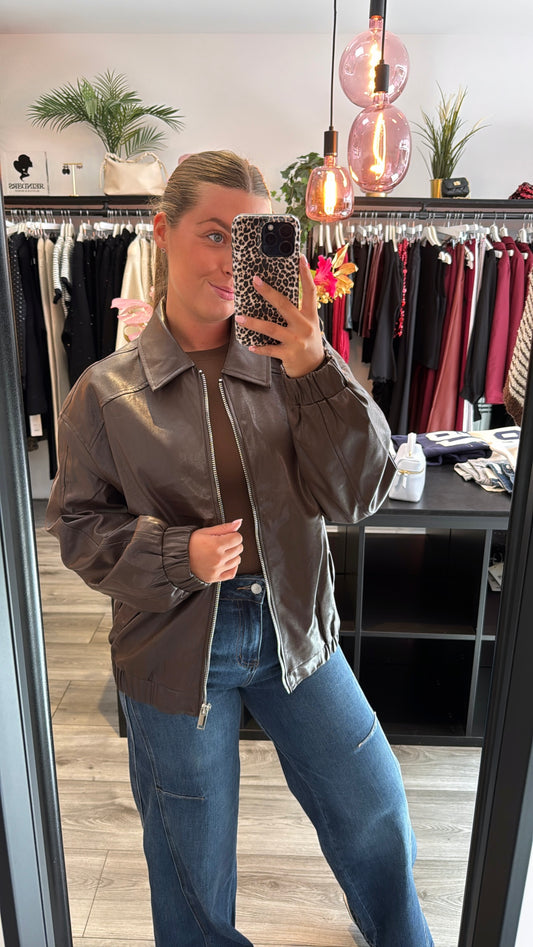 Suedine Look Jasje Bruin