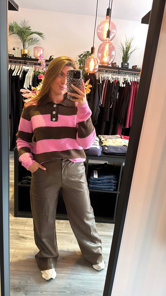 Join waitlistAmbika Knitted Polo Bruin/Roze