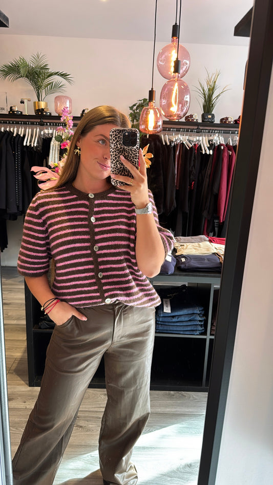 Ambika Knitted Striped Top Bruin/Roze