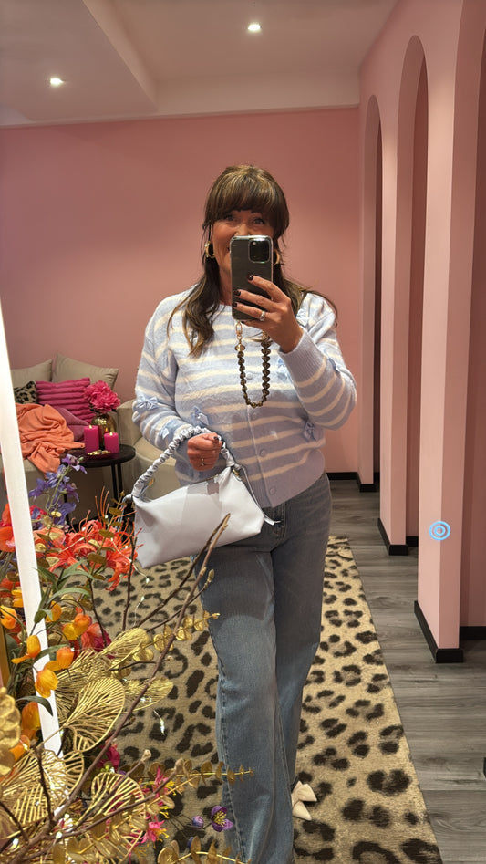 Join waitlistBow Striped Cardigan Blue/White