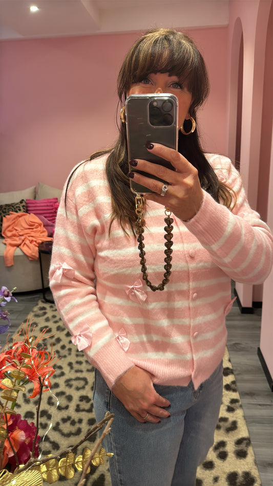 Join waitlistBow Striped Cardigan Pink/White