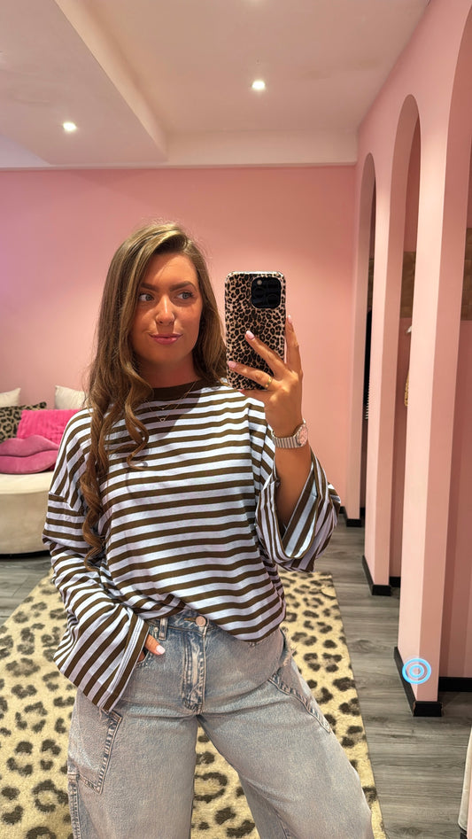 AusverkauftStreep Longsleeve Bruin/Blauw