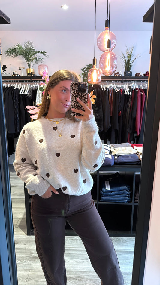 Sold outKnitted Hearts Trui Bruin
