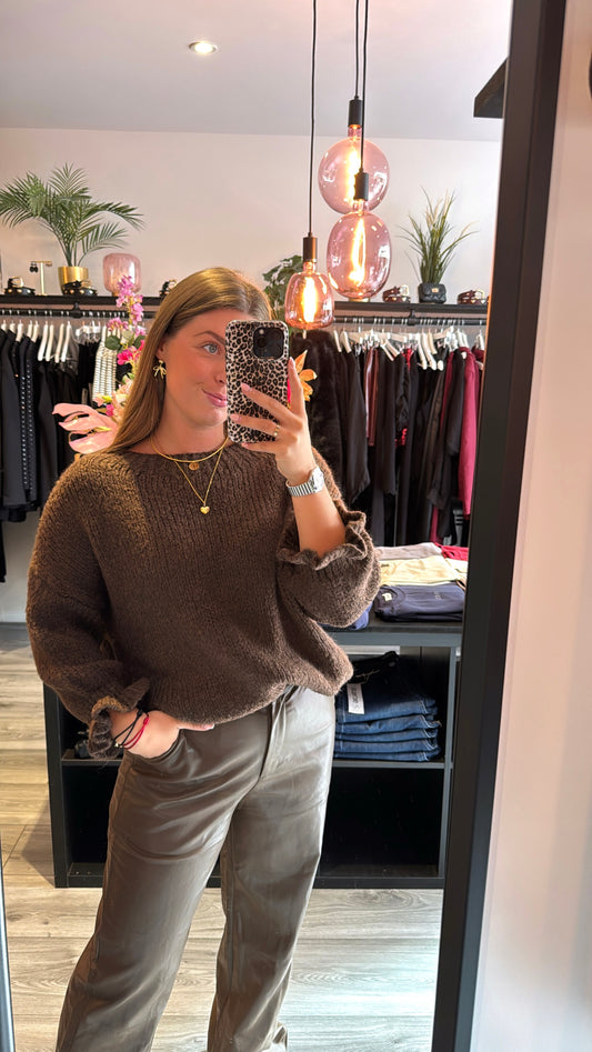 Sold outKnitted Ruffle Trui Bruin