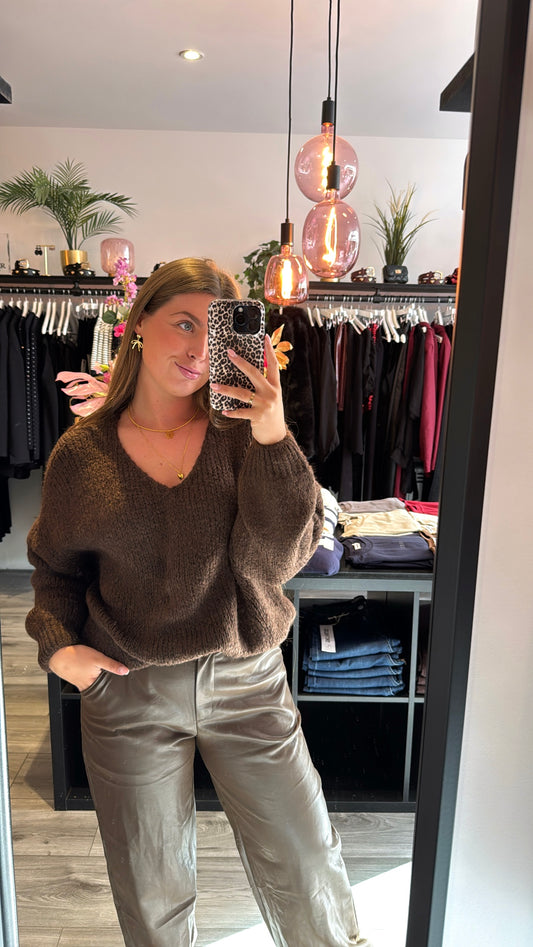 Sold outKnitted V Hals Trui Bruin