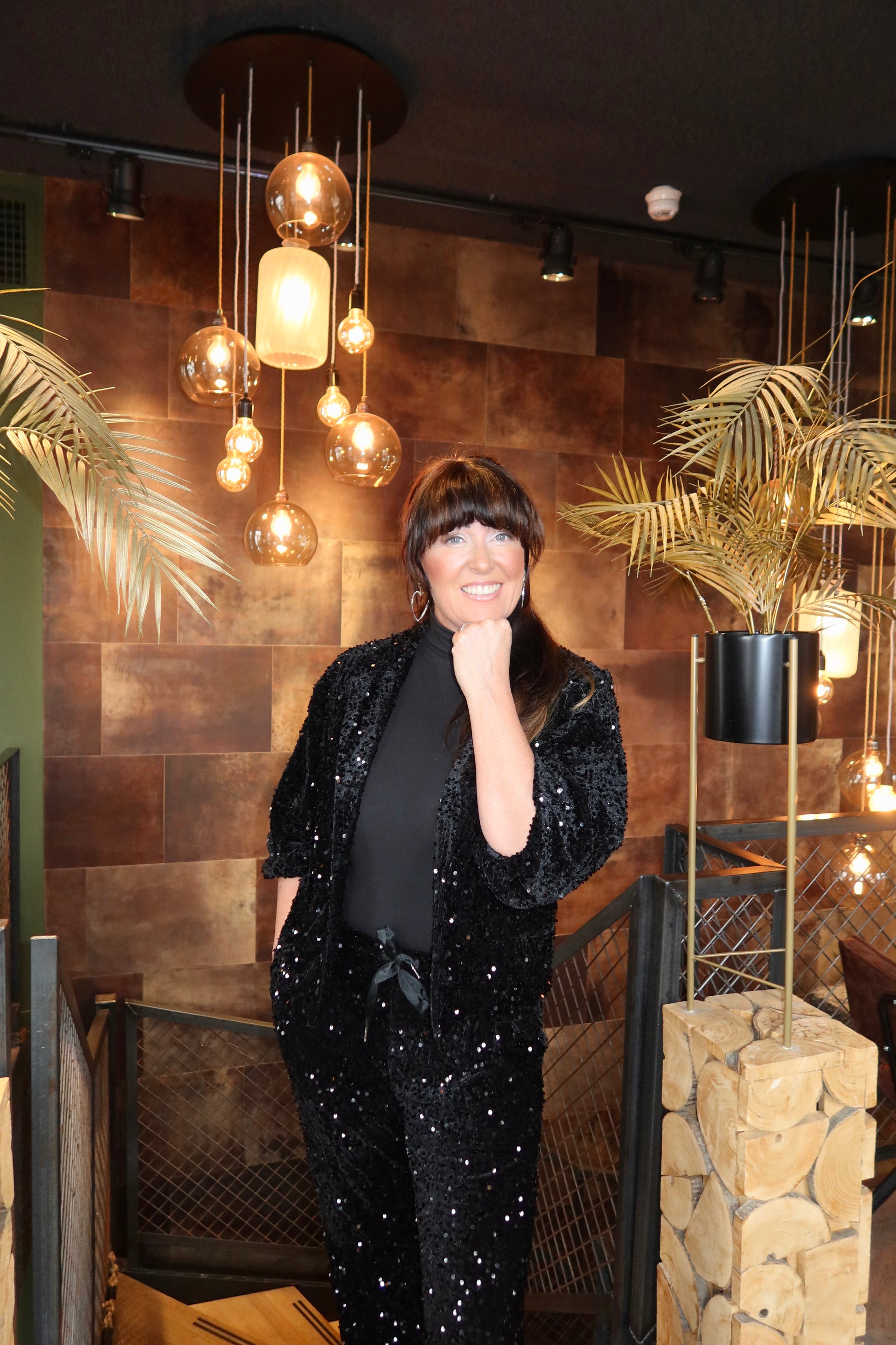 Blazer met een pofmouw, velvet en mooie pailleten.