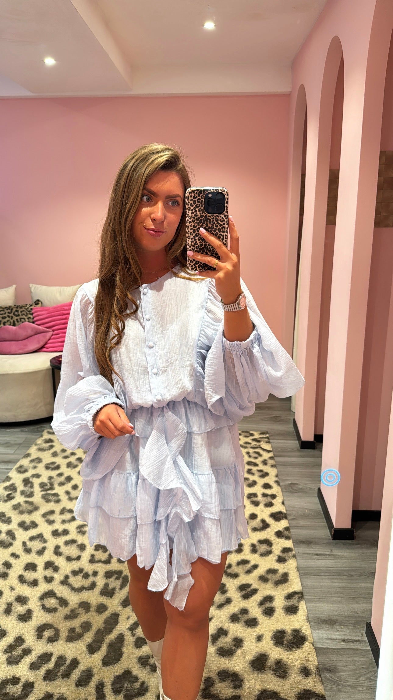 Jurkje met prachtige ruffle details. Imani is 1.65 en draagt maat S van dit jurkje