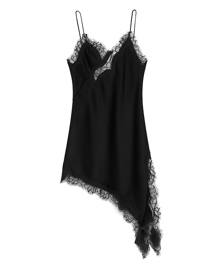 Een trend op dit moment, het satijnen jurkje met lace.