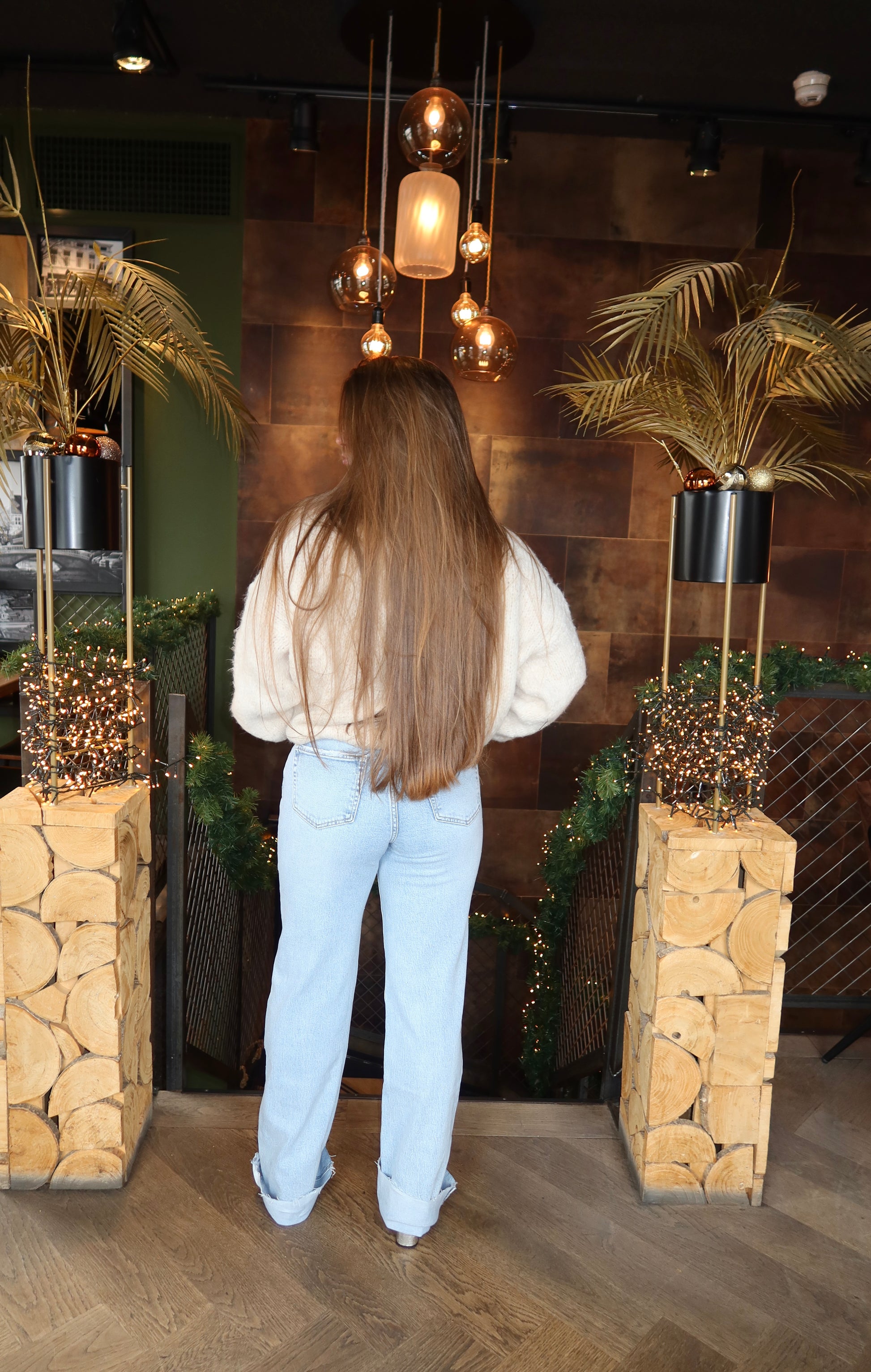 Prachtige jeans van Queen Hearts, in een mooie lichte wassing en een subtiel glitter detail op de voorkant en achterkant. Deze broek bevat iets stretch en valt lang Imani is 1.65 en draagt maat S/36 van deze jeans